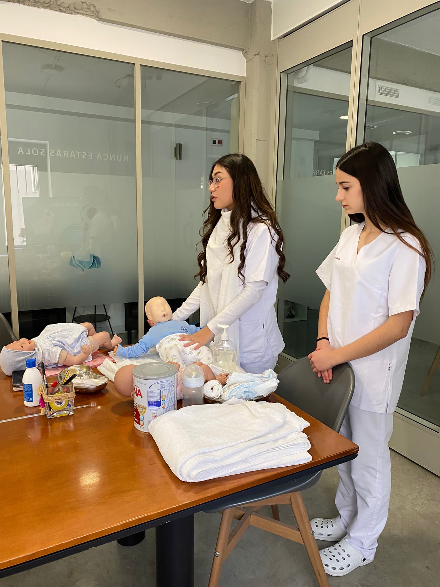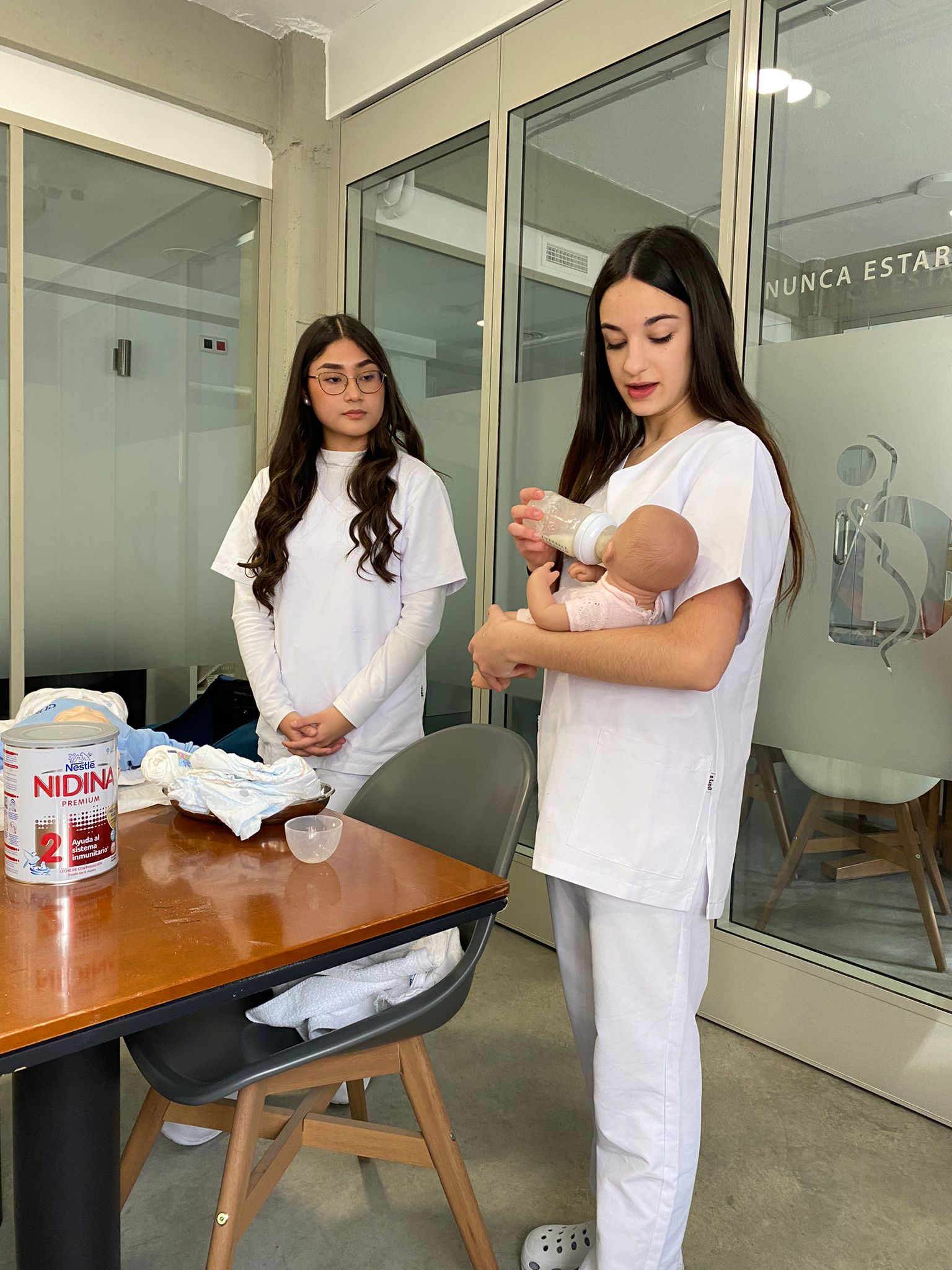 El pasado 8 de febrero las alumnas del Grado Técnico de cuidados auxiliares de enfermería (TCAE) del Instituto tecnológico Fuenllana impartieron un curso de primeros auxilios y alimentación del bebé a madres que acompañamos en nuestra Asociación REDMADRE Madrid.