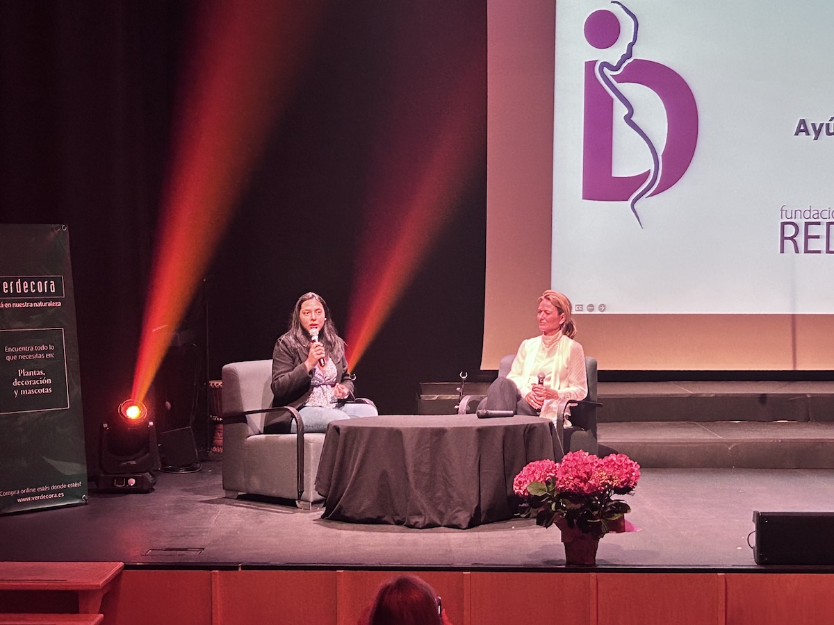 Durante el acto, María Torrego, Presidenta de la Fundación REDMADRE presentó a los asistentes nuestra labor y estuvo acompañada por una de las madres que reciben apoyo en Madrid, Ashley, quien contó su testimonio y arrancó los aplausos del público al conocer su valentía ante un embarazo inesperado.