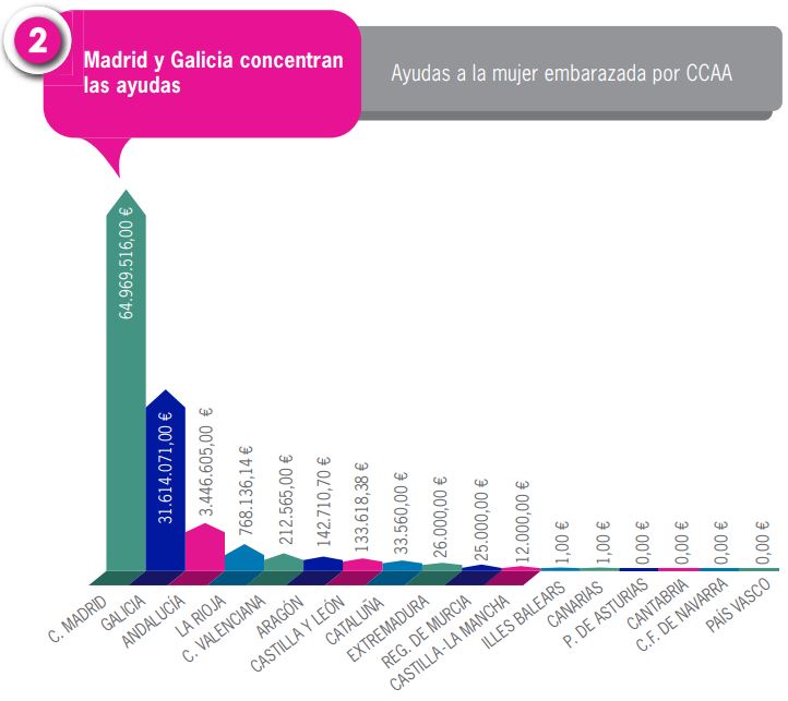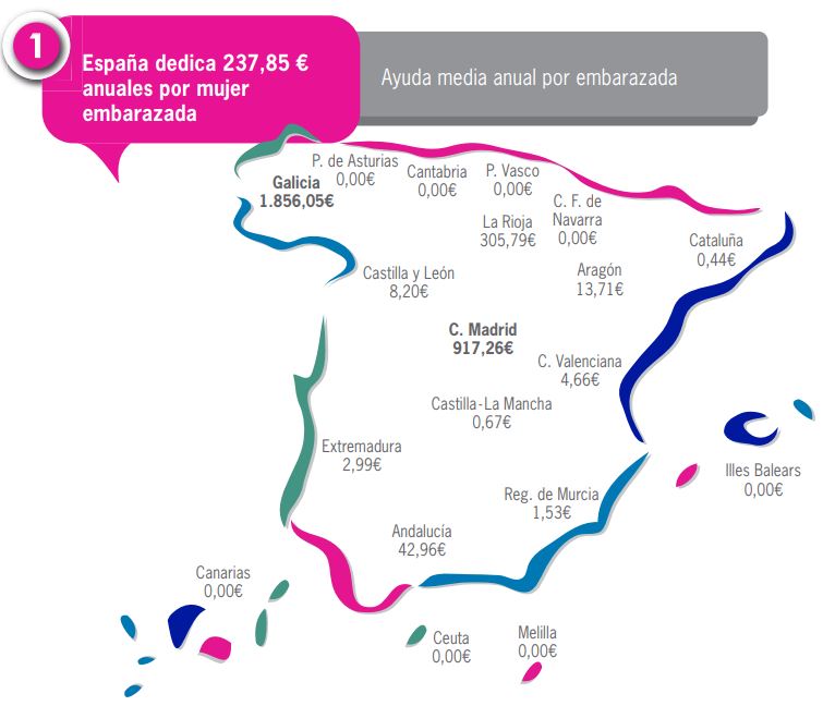 es la ayuda media que recibe una mujer embarazada en España descontando la ayuda de Madrid y Galicia