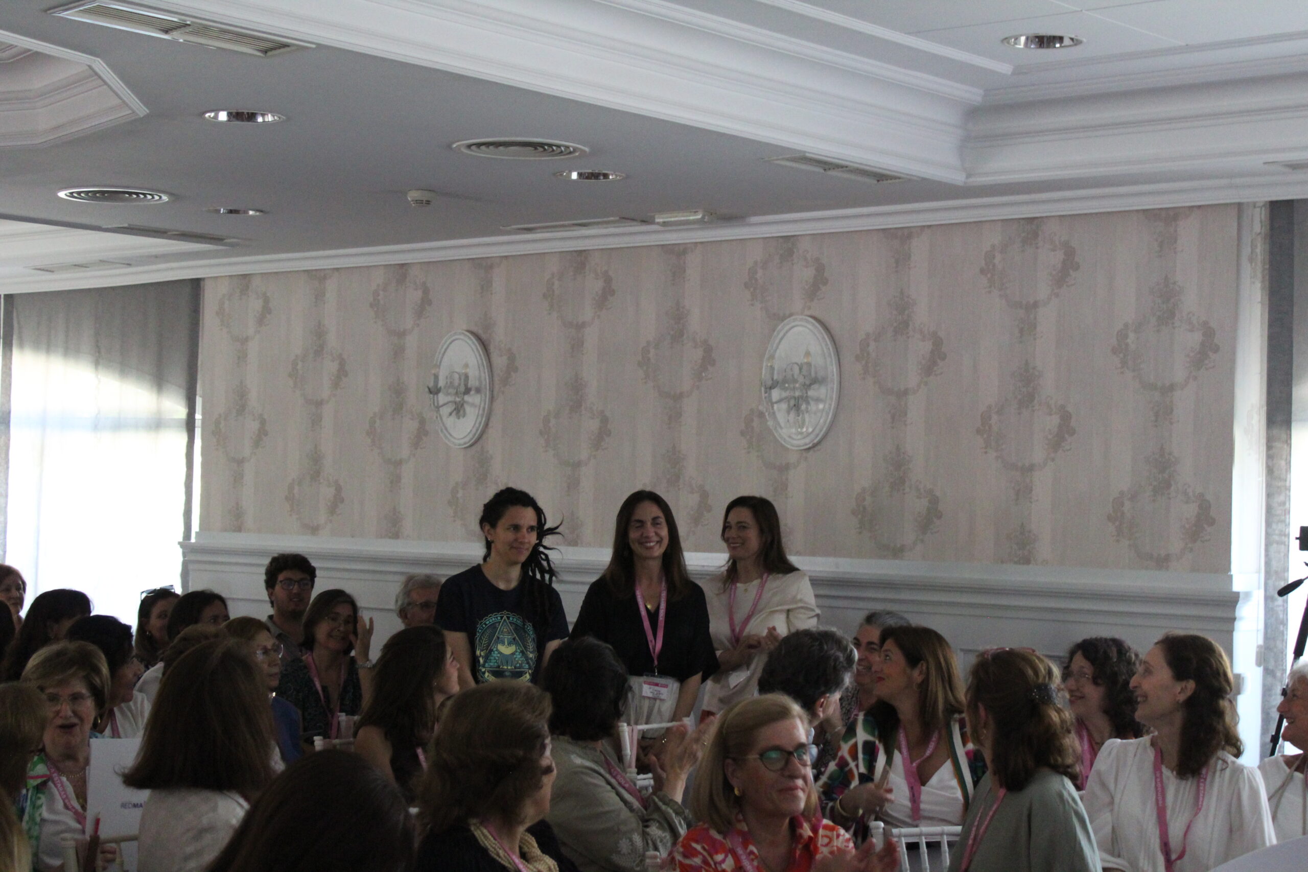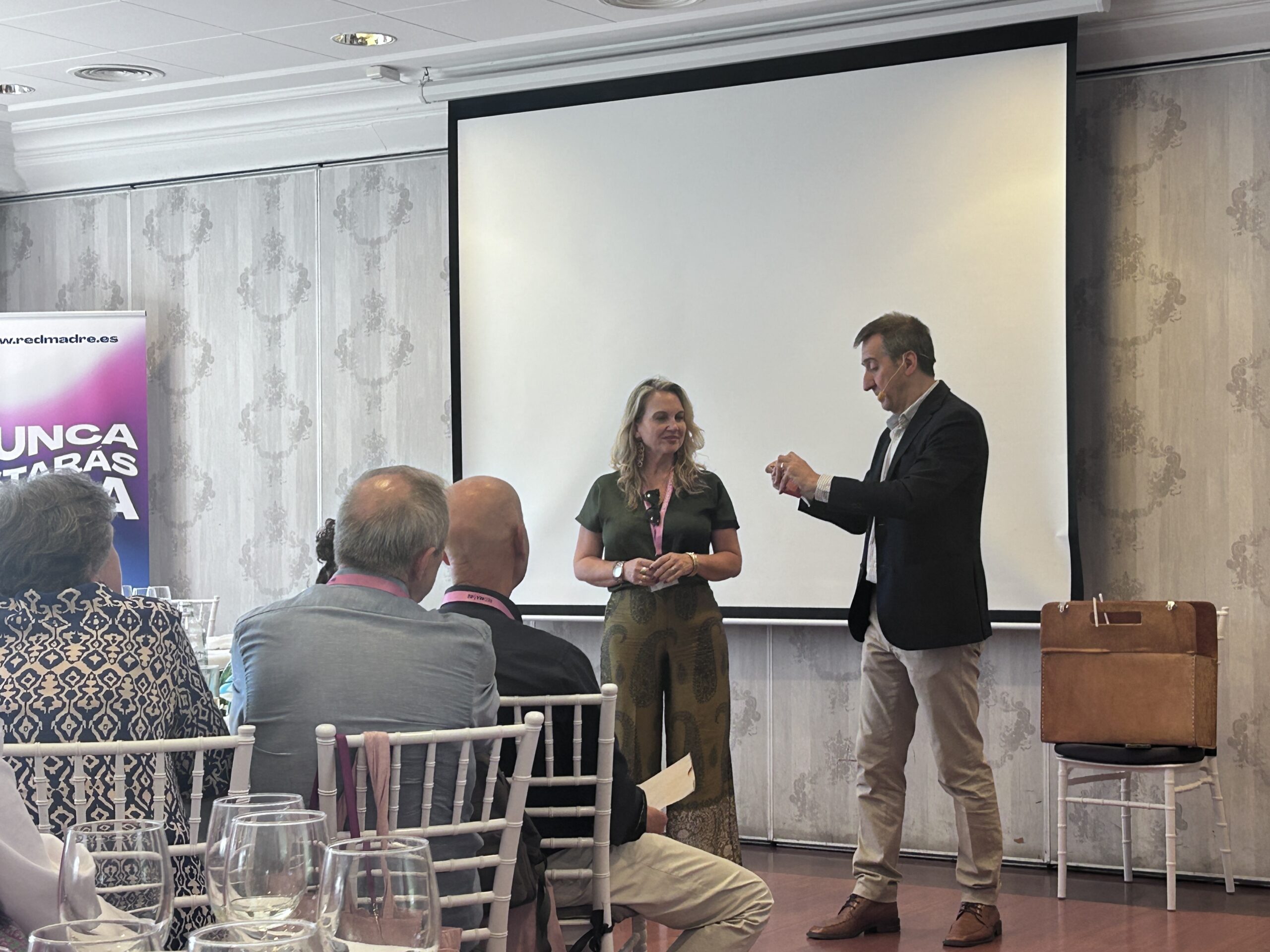 Tras su bienvenida se dio paso a la entrega del Premio a la Entidad Solidaria 2025, que este año recayó sobre Fundación Adecco, por el gran apoyo que realizan a nuestro proyecto de empleabilidad. Recogió el premio Mª José Bordetas, consultora de Adecco encargada de nuestro de los talleres y empleo con los que Fundación Adecco colabora con REDMADRE; gracias a su compromiso han sido empleadas más de 100 mujeres que participan en el programa de empleo.