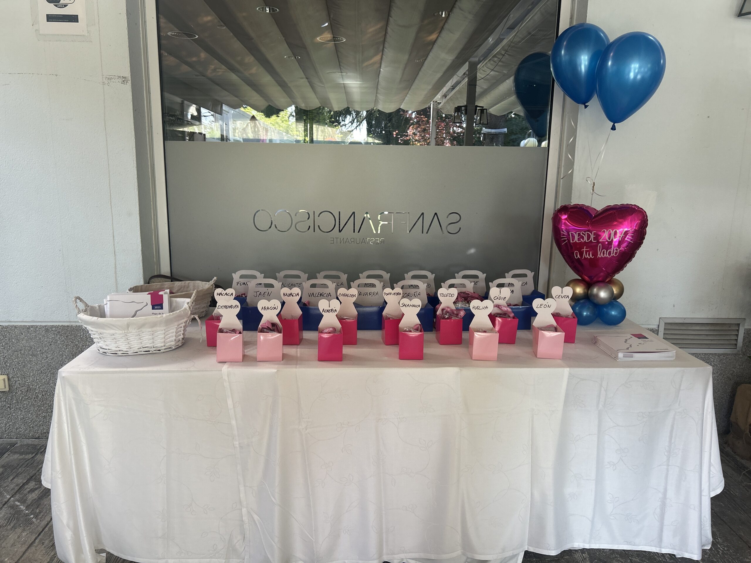 Terminamos la celebración con una rifa entre los voluntarios asistentes para celebrar nuestro 18 cumpleaños con regalos donados por grandes corazones, los de familias y empresas que se unieron a nuestra celebración de esta generosa manera. Clínica Elviso donó para alguna madre usuaria 5 sesiones de tratamiento con Indiba, Preversalud 1 sesión para alguna madre que necesite apoyo psicológico en su duelo, Womum Madrid donó 2 packs estética para alguna voluntaria, Bodega El Carabal 6 sets de 3 botellas de vino, cada uno en una maravillosa caja, familia Mayoral, tres set de embutidos exquisitos de Extremadura, Embutidos Montellano, 15 regalos deliciosos, El Batán de la Familia Tuñón, 12 botellas de aceites, 2 bonos de Nicoli donados por Fátima Armada, 1 Vestido de cocktail de Rosa Clará donado por Paloma Cuevas, 5 espectaculares cestas de La Chinata donados por Fernando Oliva, 3 sets de 2 latas de anchoas muy top de la Familia Ruíz-Garma. Y The Milkshake Room donó globos de 18 cumpleaños para nuestra celebración, que dieron un toque de elegancia al evento. Gracias a la colaboración de todos, el evento fue todo un éxito y la rifa un momento de diversión y celebración llena de detalles.