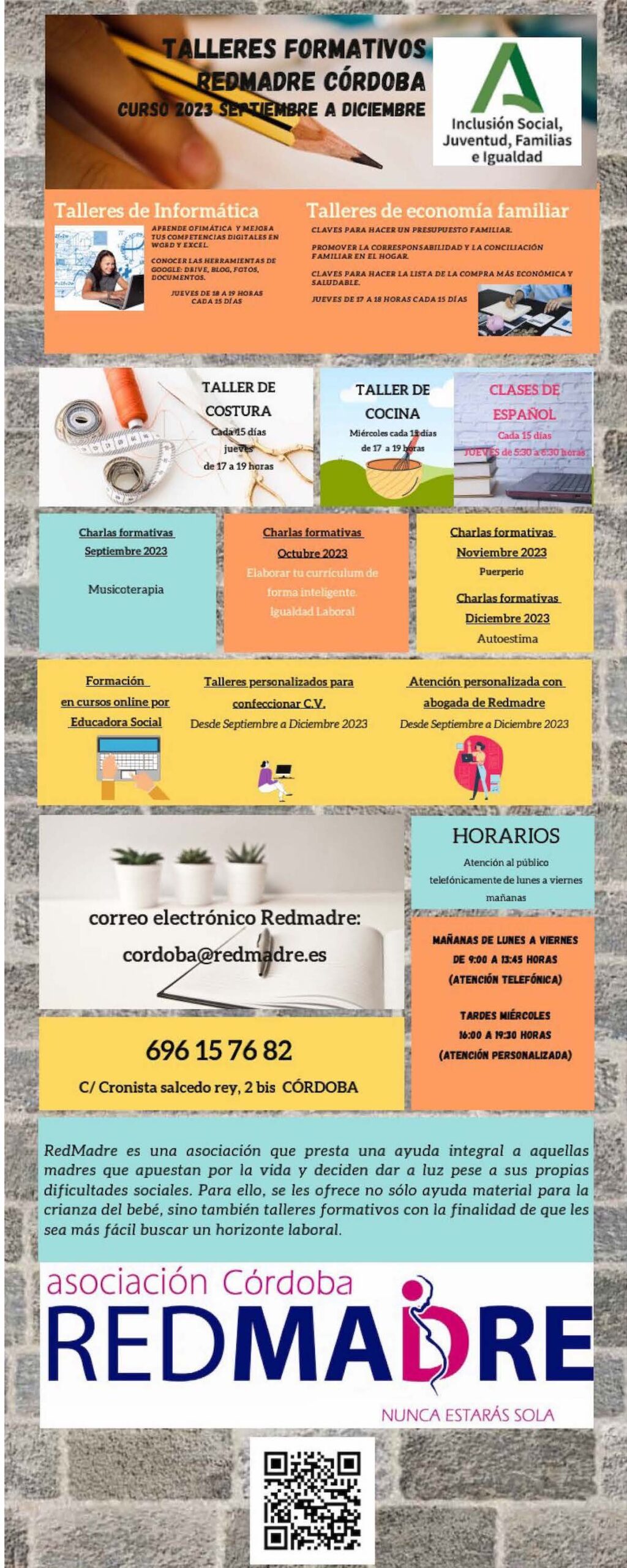 El pasado 12 de diciembre la Asociación REDMADRE Córdoba recibió por parte de la Consejería de Inclusión Social, Juventud, Familias e Igualdad de la Junta de Andalucía la cantidad de 7.792,46€ que corresponde al 50% del presupuesto total de un proyecto presentado en concurrencia competitiva ante la línea de «Subvenciones dirigidas a entidades privadas sin ánimo de lucro para proyectos de asesoramiento, apoyo y acompañamiento dirigidos a mujeres embarazadas y madres sin recursos con hijos de cero a 3 años para el ejercicio 2023».