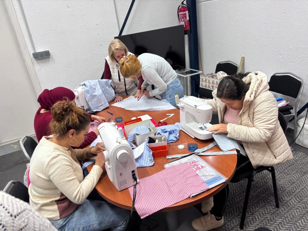 Las voluntarias de la asociación AMMER, Myren y Victoria, amorosas, que hacen que mujeres que nunca habían hecho costura, hagan verdaderas maravillas. Un curso que yo he titulado COSER Y HABLAR, porque sí, allí se cose y se habla de todo. Nunca me podré olvidar, lo orgullosa que estaba una mujer cuando me enseñó el producto finalizado y realizado con sus manos.
