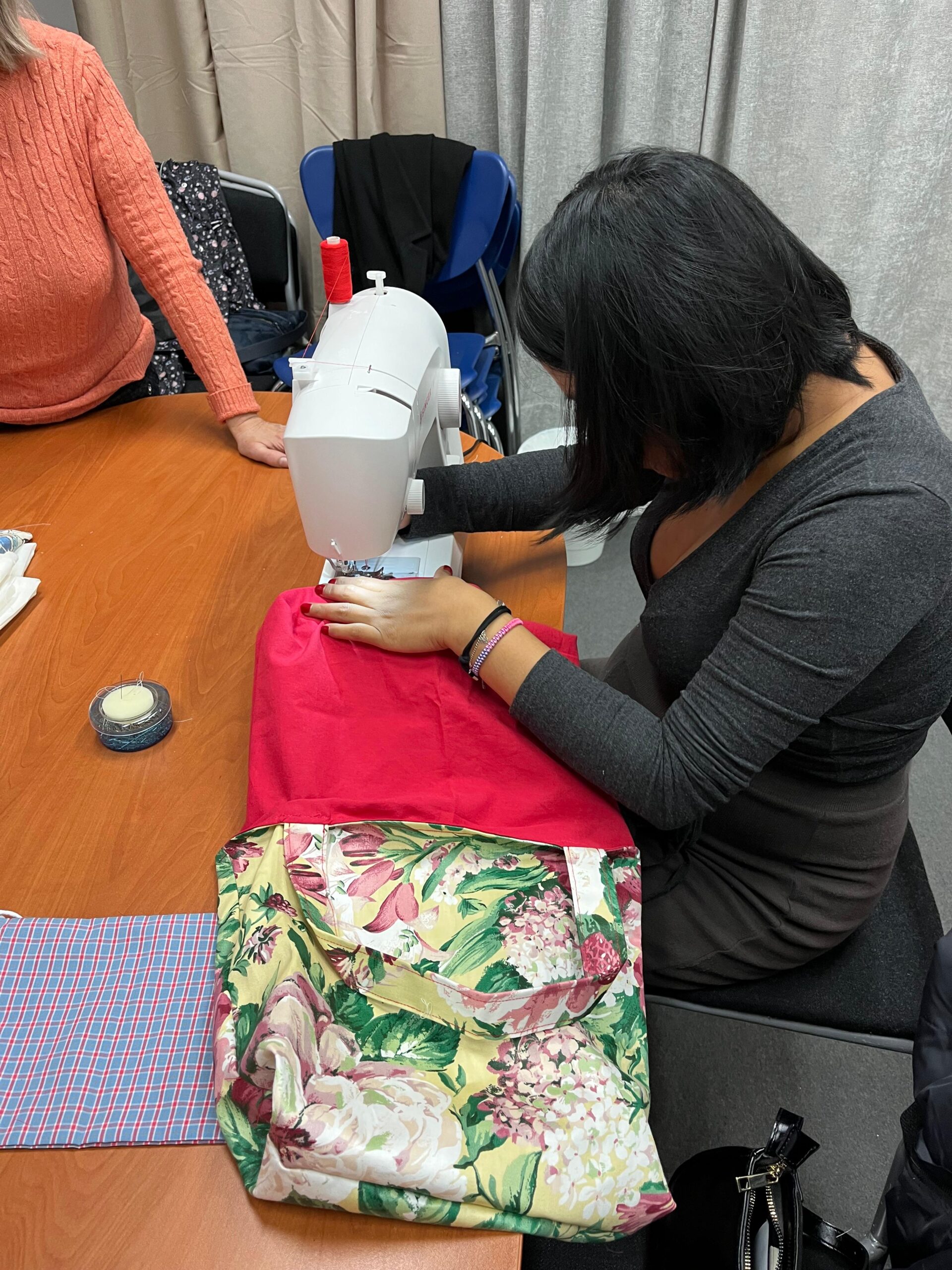 Las voluntarias de la asociación AMMER, Myren y Victoria, amorosas, que hacen que mujeres que nunca habían hecho costura, hagan verdaderas maravillas. Un curso que yo he titulado COSER Y HABLAR, por sí allí se cose y se habla de todo. Nunca me podré olvidar lo orgullosa que estaba una mujer cuando me enseño el producto finalizado y realizado con sus manos.