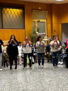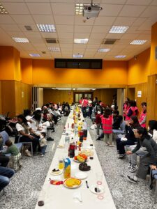 Durante la celebración, las familias pudieron disfrutar de una merendola compartida, así como de diferentes juegos para niños y adultos, entre los que destacaron la carrera de sacos y el juego del huevo en la cuchara, que llenaron la sala de risas y complicidad entre pequeños y mayores.
