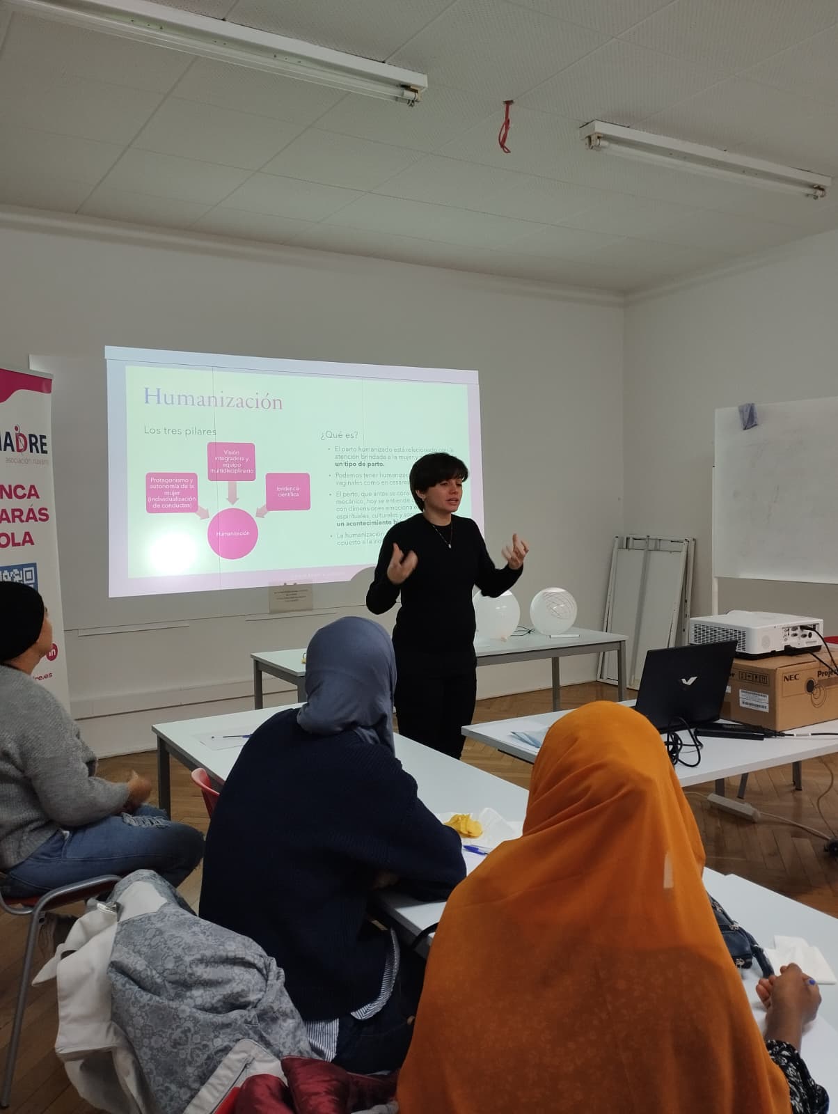 Durante esta primera sesión, se han abordado contenidos fundamentales como la humanización del parto, poniendo el foco en el respeto a los tiempos y necesidades de la mujer, la anatomía implicada en el proceso del parto y la fisiología del trabajo de parto, ayudando a comprender cómo actúa el cuerpo de manera natural en este momento clave.