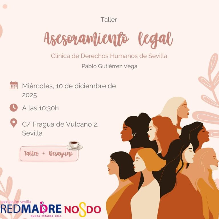 Bajo el nombre «Asesoramiento legal», esta actividad es posible gracias a la colaboración de la Clínica de Derechos Humanos de Sevilla, y el apoyo del Ayuntamiento de Sevilla. El taller, que será impartido por el abogado Pablo Gutiérrez Vega, abordará las posibles vías de tramitación de la nacionalidad por simple presunción por hijo nacido en España y está dirigido a las madres que atendemos en nuestra asociación, con especial hincapié en las procedentes de Argentina, Bolivia, Colombia, Costa Rica, Panamá, Cuba, Perú, Brasil, Cabo Verde, Guinea Bissau, Portugal, Sao Tomé y Príncipe y Uruguay.