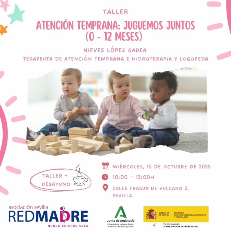 El próximo miércoles 15 de octubre vuelve a nuestra sede Nieves López Gadea, terapeuta de atención temprana e hidroterapia y logopeda, que ofrecerá el taller «Atención temprana. Juguemos juntos (0-12 meses)». El taller, en el que también participarán los bebés de nuestras usuarias, seguirá formando a las mujeres que atendemos en REDMADRE Sevilla sobre cómo deben estimular a sus bebés en sus primeros doce meses de vida a través del juego.