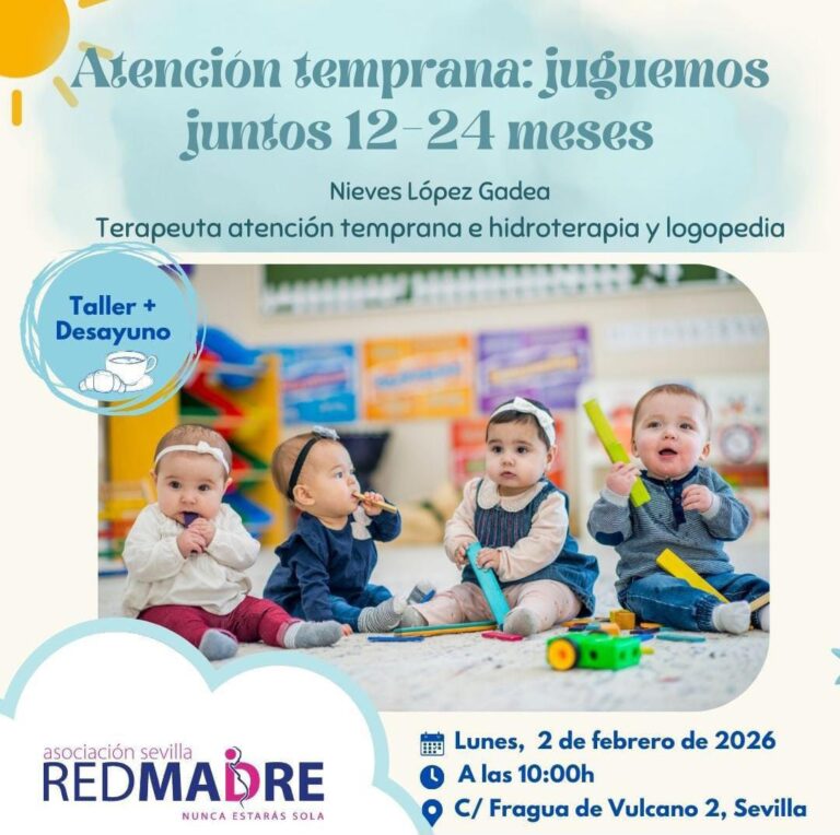 Bajo el nombre «Atención temprana: Juguemos juntos (12-24 meses)», este taller, en el que también participarán los bebés de nuestras usuarias, seguirá formando a las mujeres que atendemos en REDMADRE Sevilla sobre cómo deben estimular a sus bebés entre los doce y veinticuatro meses de vida a través del juego.