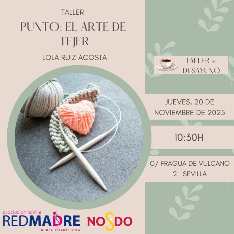 Si quieres pasar una mañana de relax y en compañía de madres en tu misma situación, no lo dudes y únete a nuestro taller de punto. Y no olvides que este taller incluye desayuno, así que ¡ven con el estómago vacío!