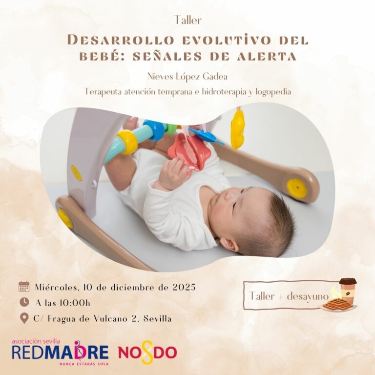 Cuando una mujer se convierte en madre, lo habitual es que le acompañe cierta preocupación sobre el desarrollo de su bebé. Desde ese momento empiezan a invadirle inseguridades, tiene dudas y se hace preguntas como “¿será normal que mi bebé haga (o no haga) esto?”, “¿debería estar ya consiguiendo esto otro?”, “¿irá todo bien?”, con las que busca la certeza de que el desarrollo de su bebé va «viento en popa». Para dar respuesta a estas inquietudes, en 2024 incorporamos en nuestro Plan de Formación una serie de talleres que abordaban temáticas relacionadas con la atención temprana, la crianza y el desarrollo evolutivo de los bebés, de gran utilidad para las mujeres que atendemos en REDMADRE Sevilla.