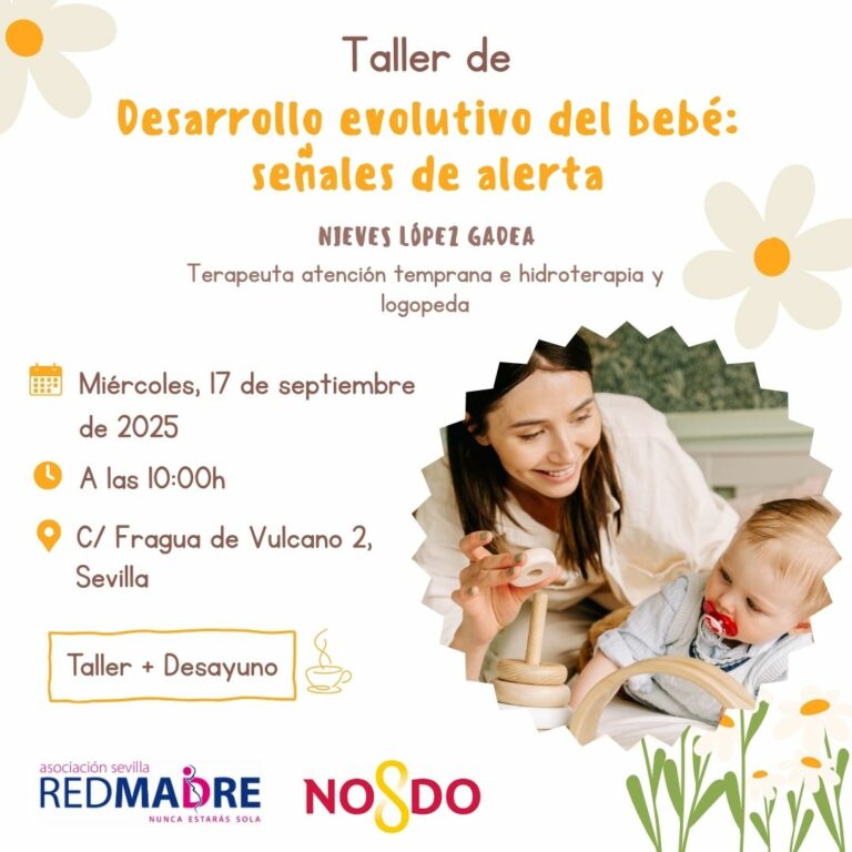 Cuando una mujer se convierte en madre, lo habitual es que le acompañe cierta preocupación sobre el desarrollo de su bebé. Desde ese momento empiezan a invadirle inseguridades, tiene dudas y se hace preguntas como “¿será normal que mi bebé haga (o no haga) esto?”, “¿debería estar ya consiguiendo esto otro?”, “¿irá todo bien?”, con las que busca la certeza de que el desarrollo de su bebé va «viento en popa». Para dar respuesta a estas inquietudes, el año pasado incorporamos en nuestro Plan de Formación una serie de talleres que abordaban temáticas relacionadas con la atención temprana, la crianza y el desarrollo evolutivo de los bebés, de gran utilidad para las mujeres que atendemos en REDMADRE Sevilla.