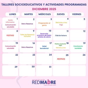 El próximo martes, 2 de diciembre, vuelve a nuestra sede a Luz Jiménez Santos, profesional de la Unidad Sanitaria de Psicología de REDMADRE Sevilla, con una nueva sesión de su taller «Entre nosotras». Durante el mes de diciembre, Luz abordará con nuestras usuarias la corresponsabilidad.