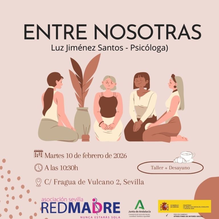 El próximo martes, 10 de febrero, vuelve a nuestra sede a Luz Jiménez Santos, profesional de la Unidad Sanitaria de Psicología de REDMADRE Sevilla, con una nueva sesión de su taller «Entre nosotras», que en este ocasión se centrará de nuevo en la gestión de la frustración en la vida de las mujeres que atendemos en nuestra asociación.