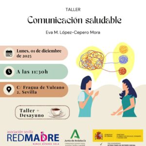 Si quieres asistir a este taller, por favor, no olvides reservar contactando con nosotros en los teléfonos 954 22 68 44 (de lunes a viernes, en horario de mañana) y 608 577 563 (24 horas) o por correo electrónico sevilla@redmadre.es.