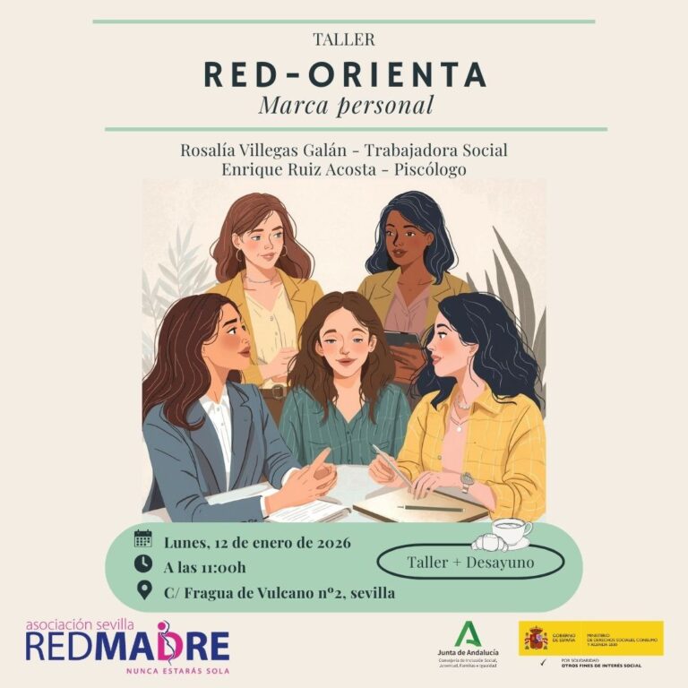 El próximo lunes, 12 de enero, nuestra trabajadora social Rosalía Villegas Galán y Enrique Ruiz Acosta, psicólogo de la Unidad Sanitaria de Psicología de REDMADRE Sevilla, seguirán trabajando con nuestras usuarias en su proceso de búsqueda o menos de empleo. A través de su taller «RedOrienta. La marca personal en la búsqueda de empleo», continuarán descubriendo e identificando los aspectos que configuran la marca personal y cómo impactan en la búsqueda de empleo, ayudándolas a buscar y elegir estrategias para potenciar y mejorar su actual marca personal. El objetivo general de este taller es potenciar y mejorar la marca personal en la búsqueda de empleo.