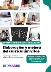 En REDMADRE Navarra  impulsamos, de la mano del voluntariado de CaixaBank, un nuevo ciclo de formación pensado para mejorar la empleabilidad y facilitar el acceso al mercado laboral de las madres que atendemos en la asociación. Durante los meses de febrero y marzo realizaremos tres sesiones formativas adaptando estos talleres a sus realidades concretas.